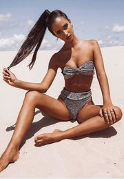 Metallic High Waisted High Leg Twist Bandeau Bikini Swimsuit