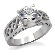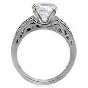 TK069 - High polished (no plating) Stainless Steel Ring with AAA Grade CZ in Clear