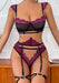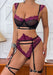 Indulge in elegance with this exquisite purple lace garter 4-piece set. Featuring supportive underwire and adjustable spaghetti straps, it includes a garter belt, wraparound leg garters, and a matching thong panty for a captivating and complete look.