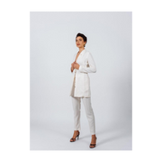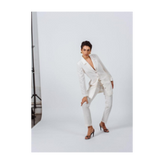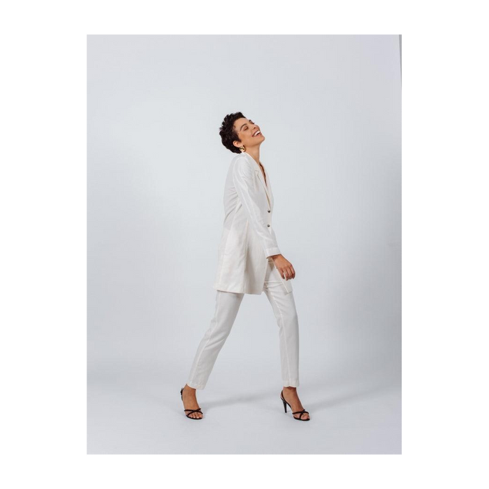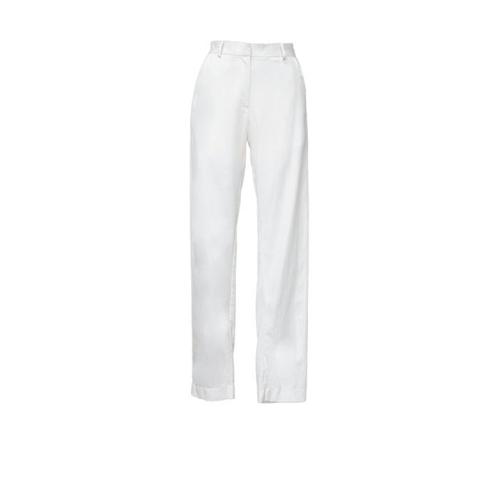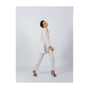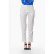 Description: These slim white pants will add a spark of charm to your wardrobe. Made with 100% Linen, these women's trousers are super comfortable throughout the year and can be paired with any blouse or top for a chic, urban or classy look. The fit is true to size, and the high-waist design is sure to accentuate effortlessly. The pants are ideal for a long day at work and evening plans. These pants have pockets.