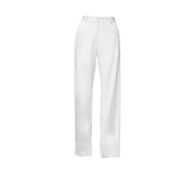 These white office trousers are available in sizes XS to XL, which are size-inclusive and fit regular. These are tailored to be worn all day. It has a mid-weight, non-stretchy fabric for a clean and classy look. Dry clean to maintain color and shape. This product is proudly Made in America.